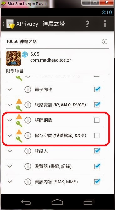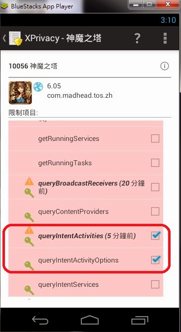 4.打開 XPrivacy,找到「神魔之塔」打勾,然後點左邊圖示進入